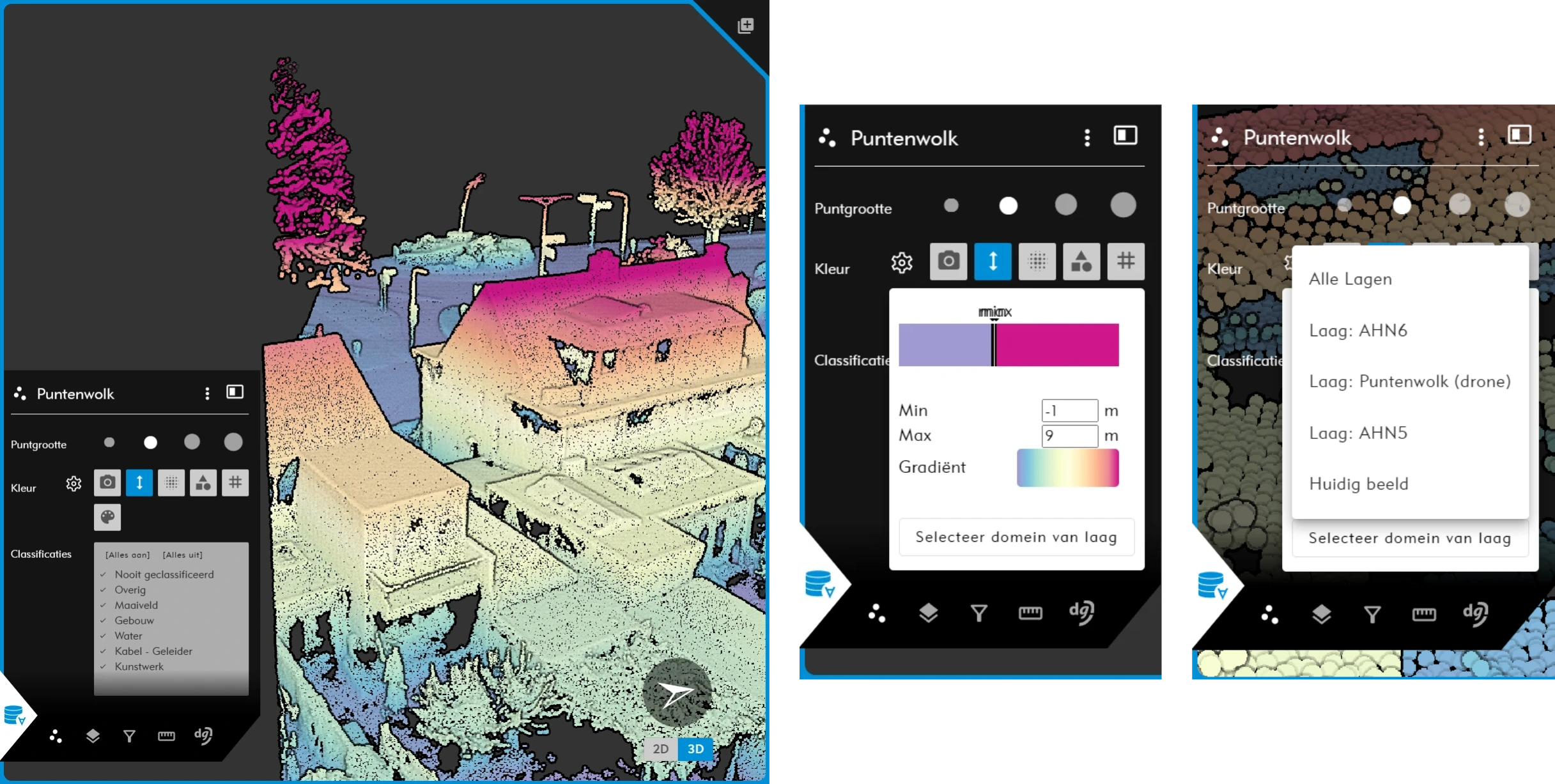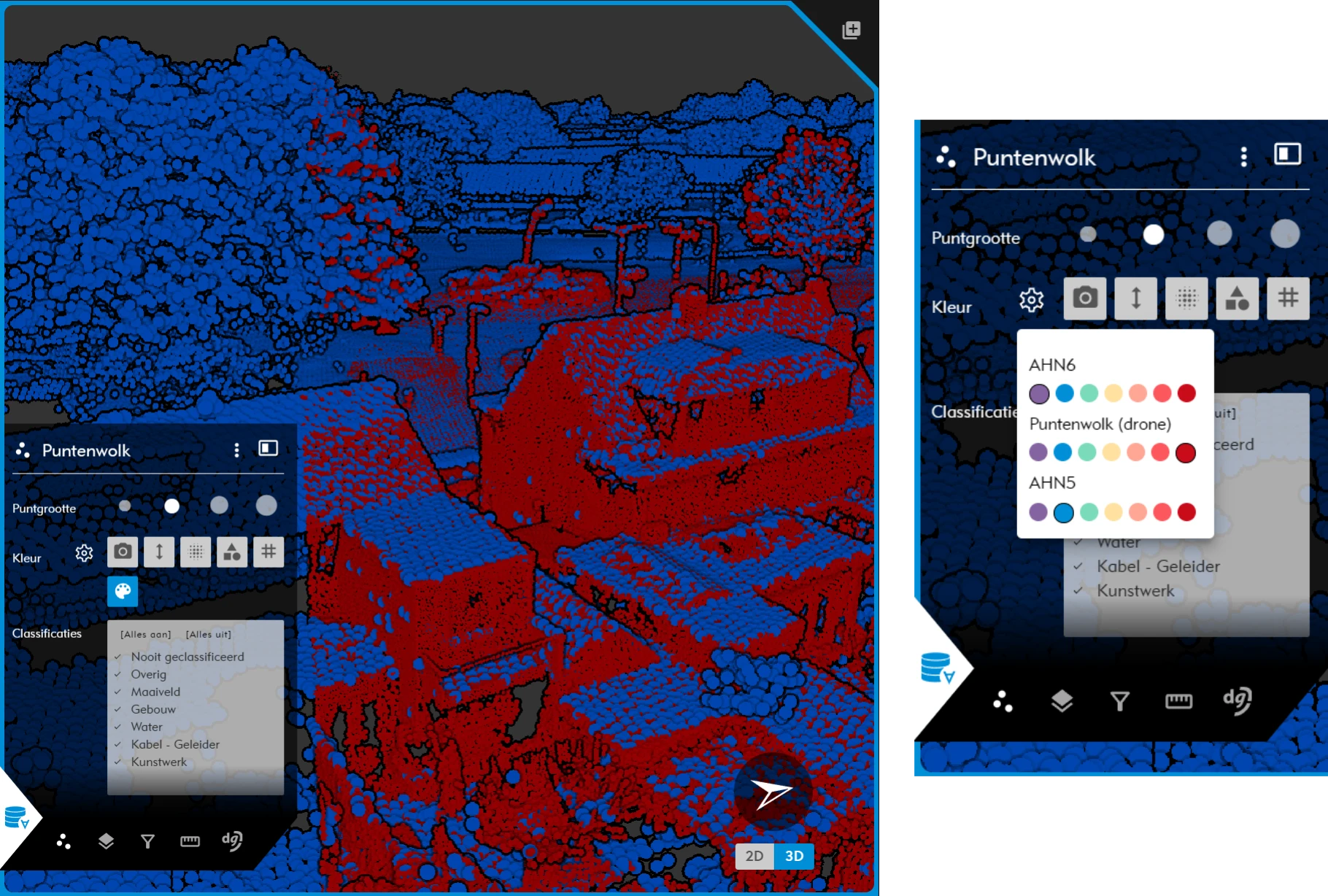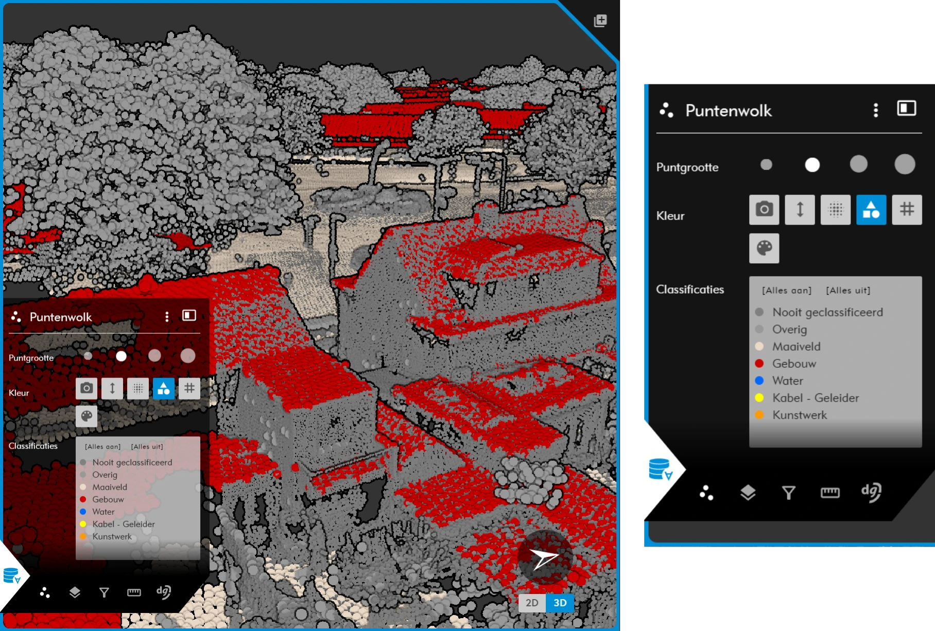 - Tip: Schakel eerst alles klassen uit en kies dan de gewenste classificatie. De viewer toont alleen de punten binnen deze categorie.