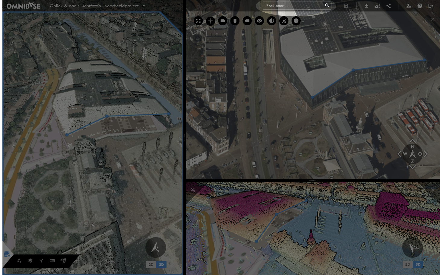 Zoeken op databron kan d.m.v. het invullen van een gedeelte of de volledige naam van een aangemaakte databron binnen Omnibase. Hiermee kan gemakkelijk een specifieke luchtfoto of panoramafoto worden geopend. Op de volgende manier kan er worden gezocht op een databron: