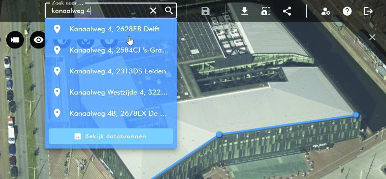 Enterof klik het gewenste adres en de applicatie zoomt naar de gewenste locatie.