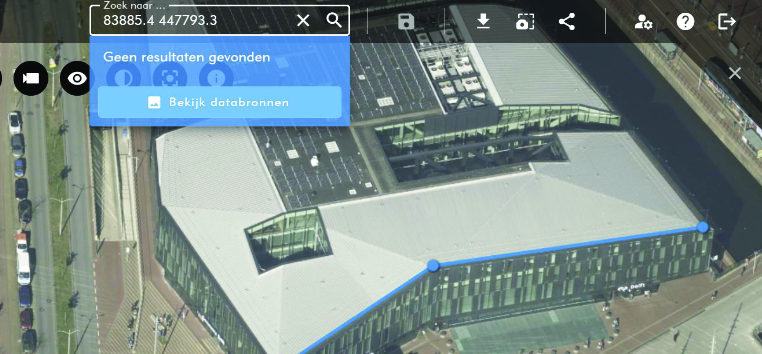 - Klik de gewenste databron aan en de applicatie zoomt naar de gewenste locatie.