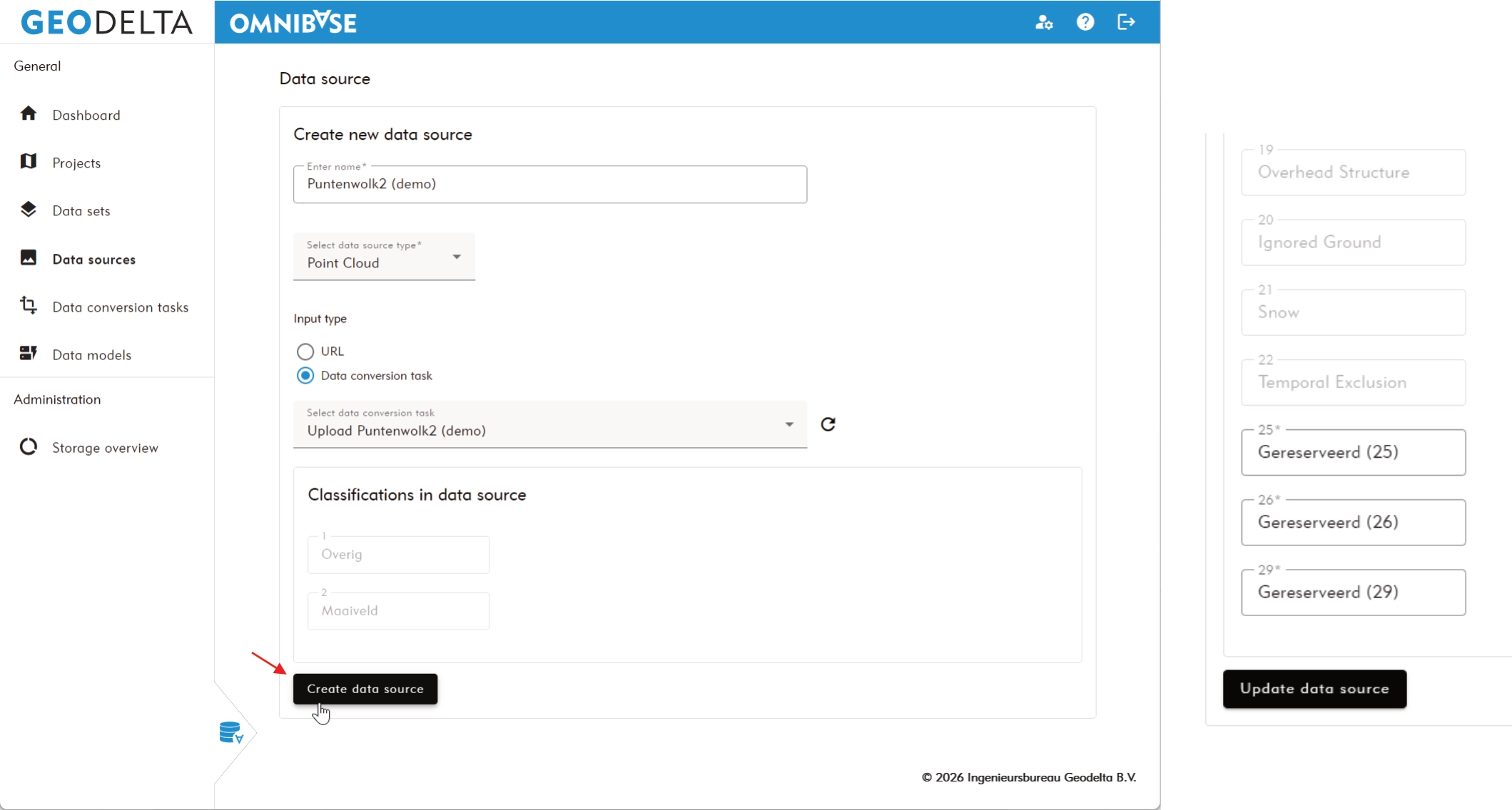 - Select source data type: Point cloud.