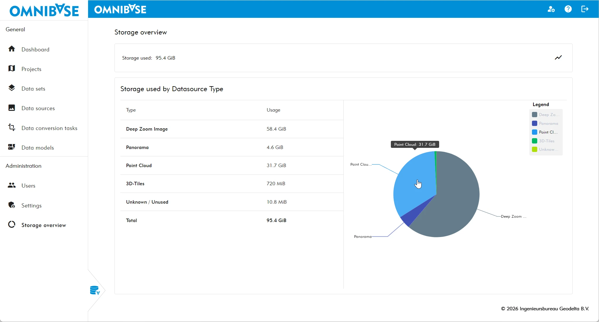 The storage overview shows how much data is stored within the entire organization. It provides real-time insight into total storage usage.