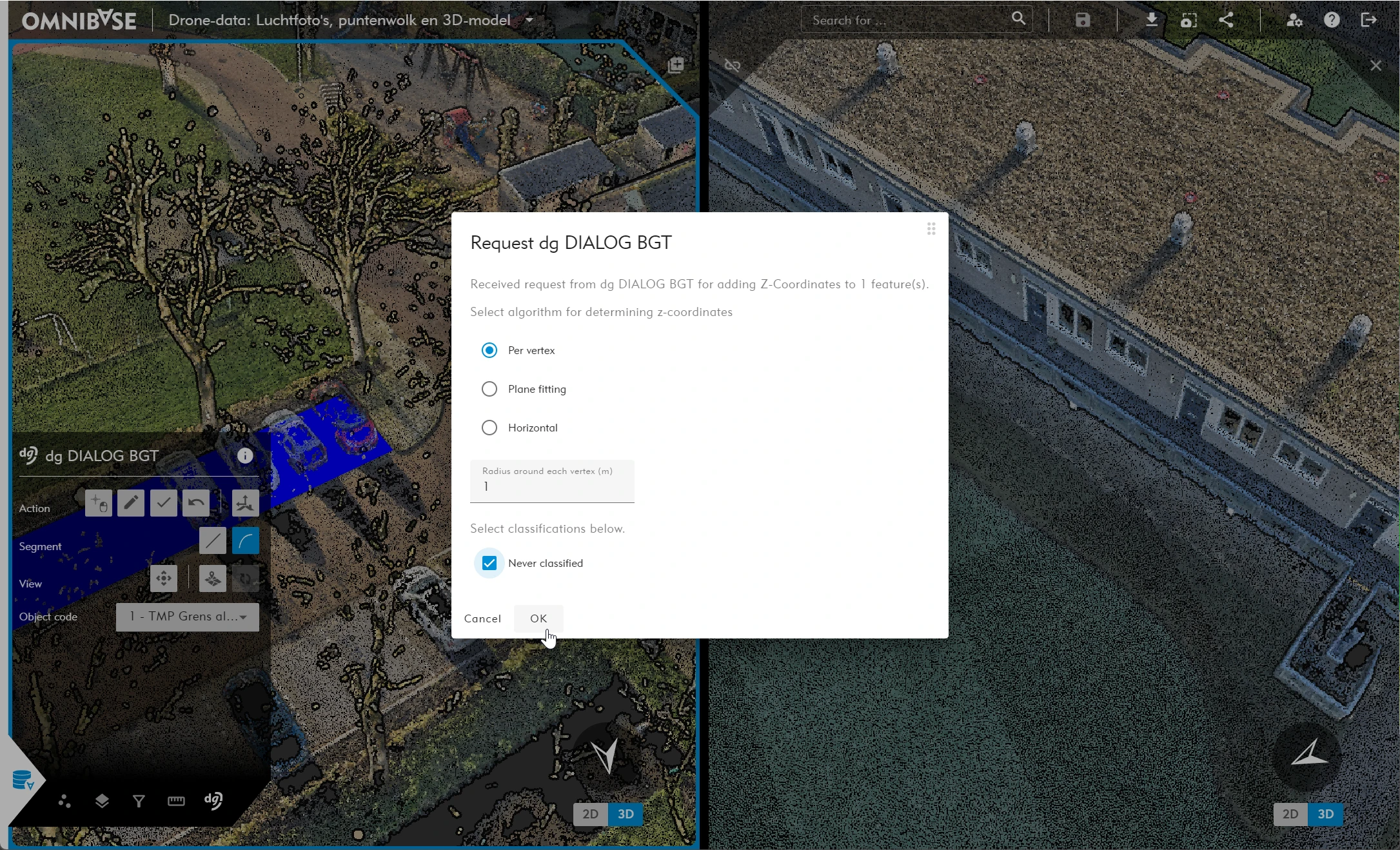 Within the integration, it is also possible to automatically assign a Z-value to all vertices within one or multiple objects based on a point cloud in Omnibase.