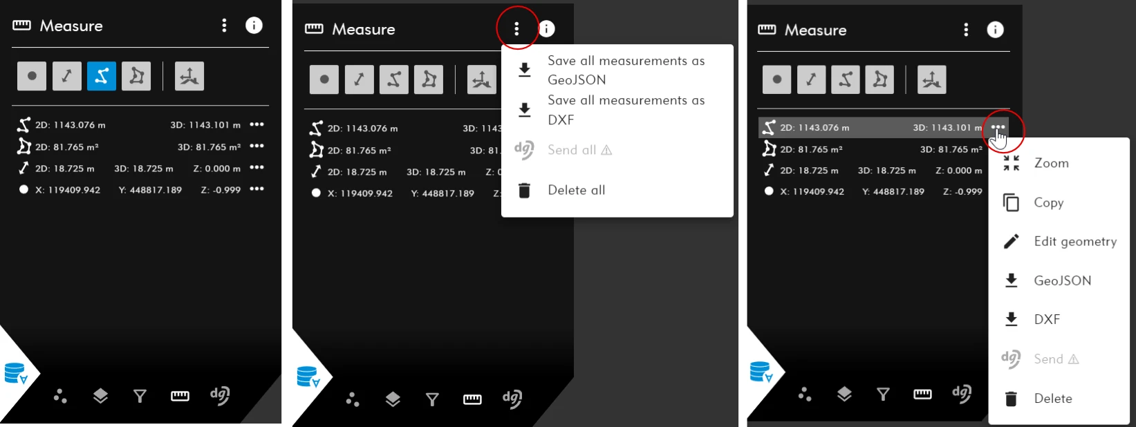 Open advanced settings via the three vertical dots at the top of the point cloud menu. Available options: