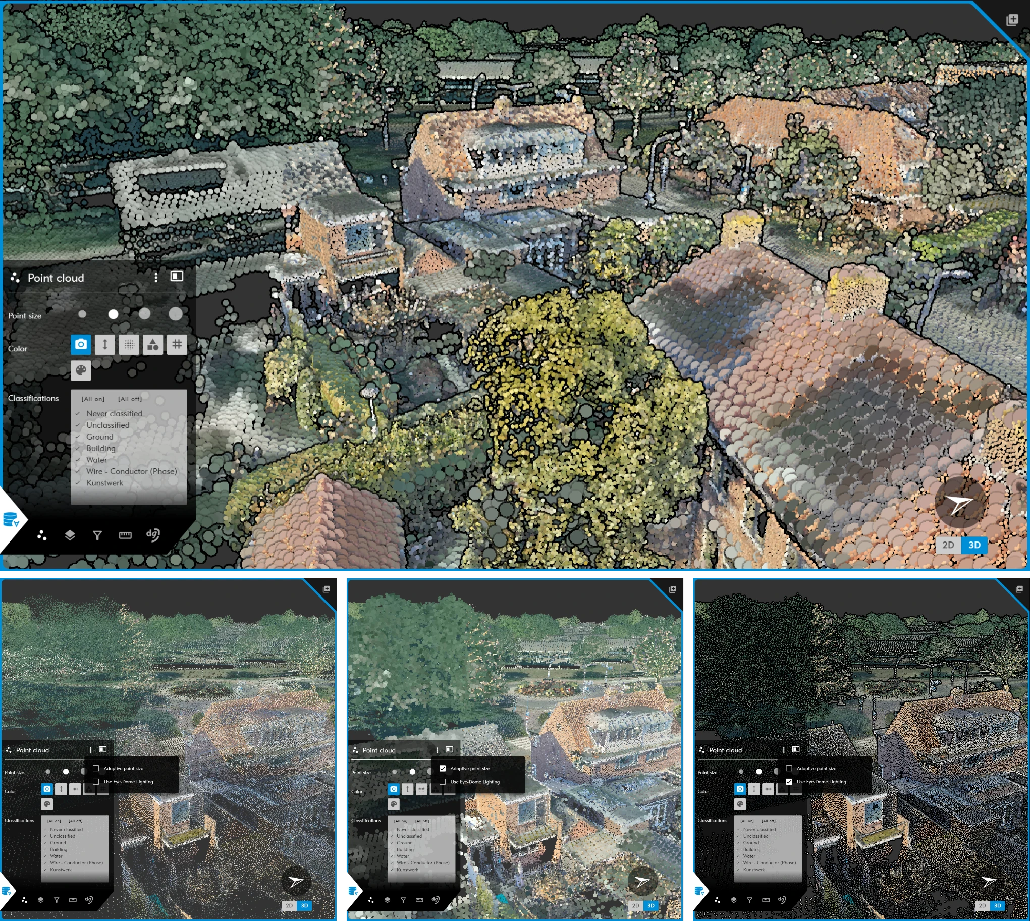 Enable both Adaptive point size and Eye-Dome Lighting for optimal visualization quality.