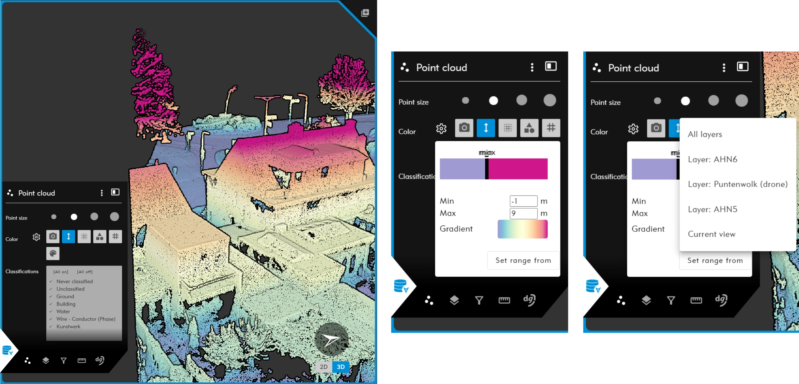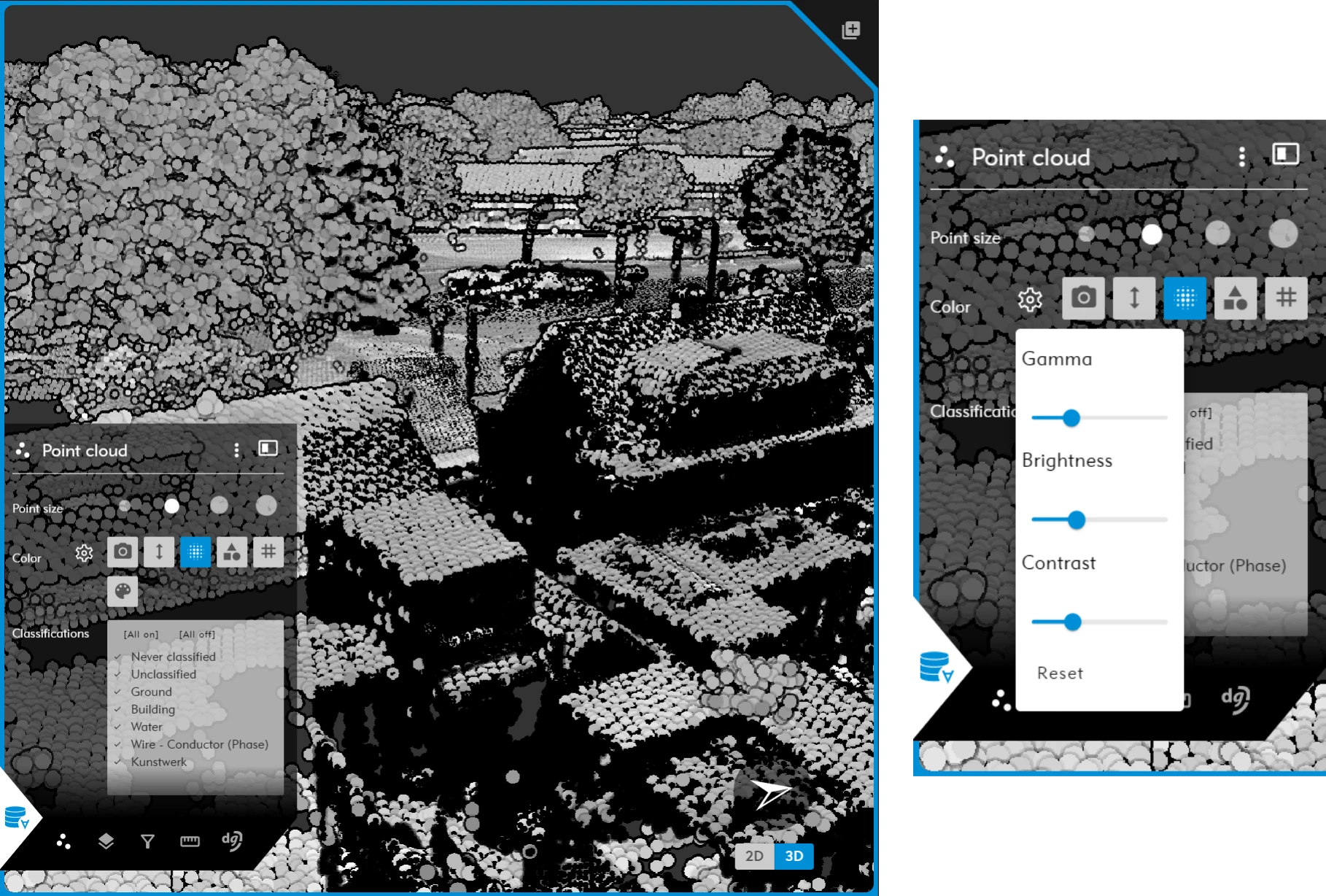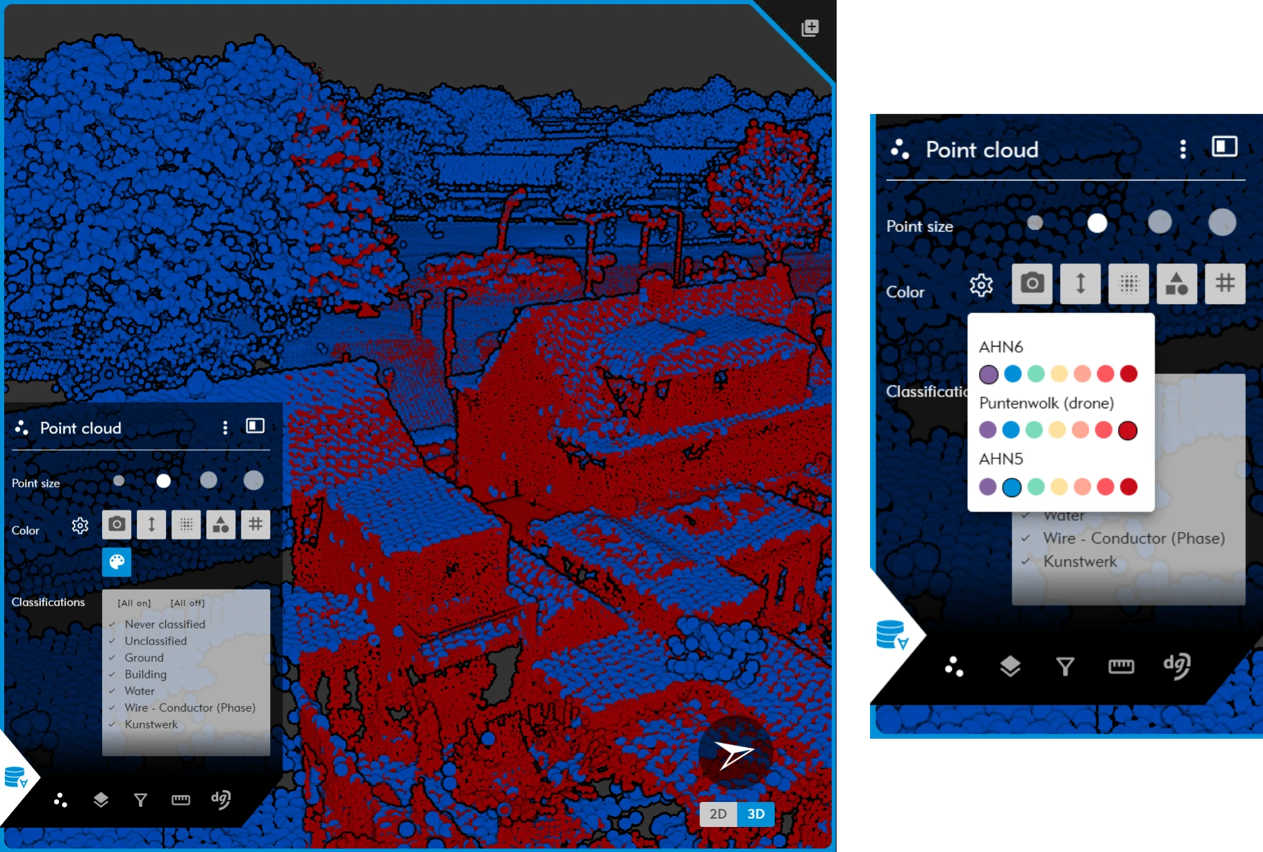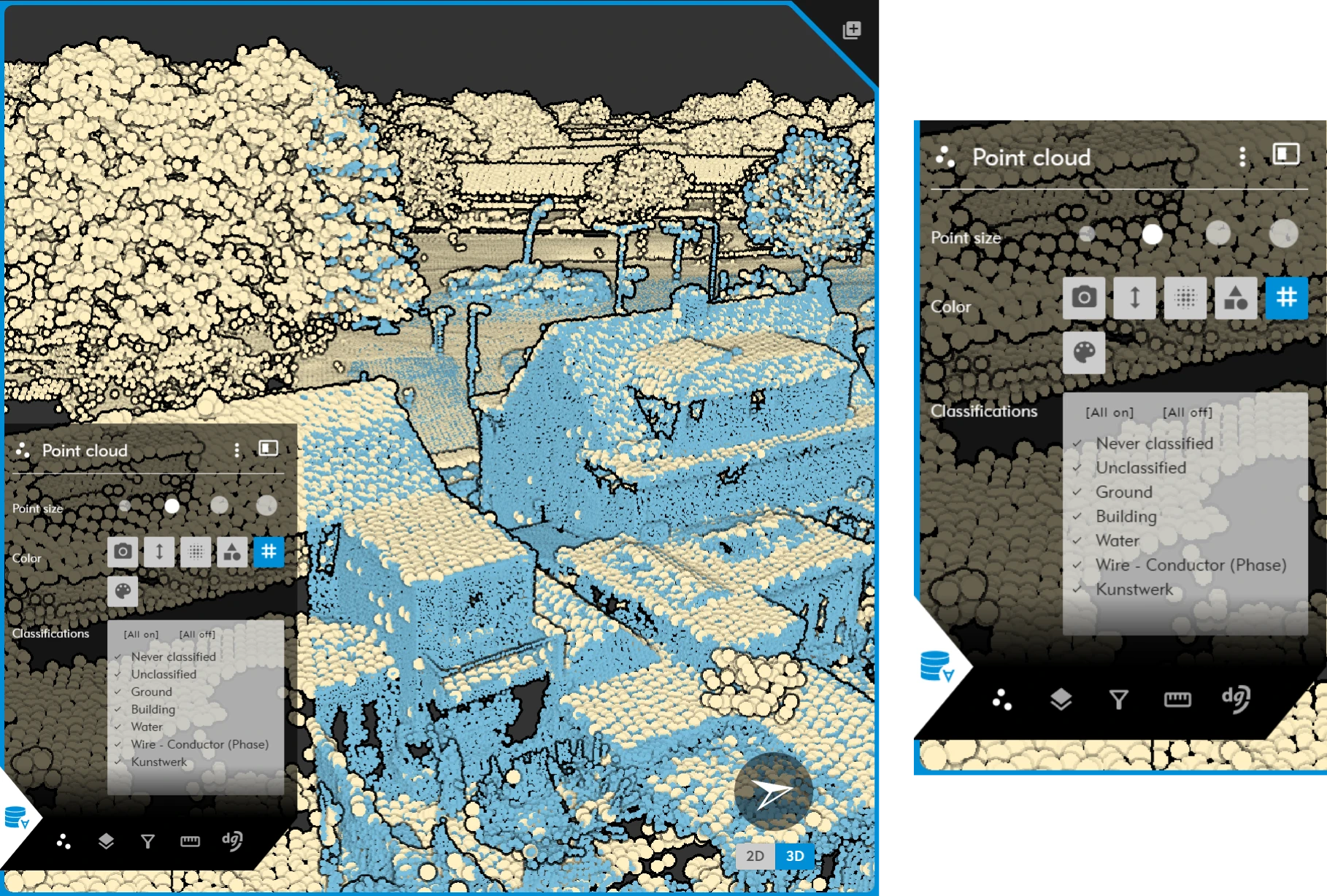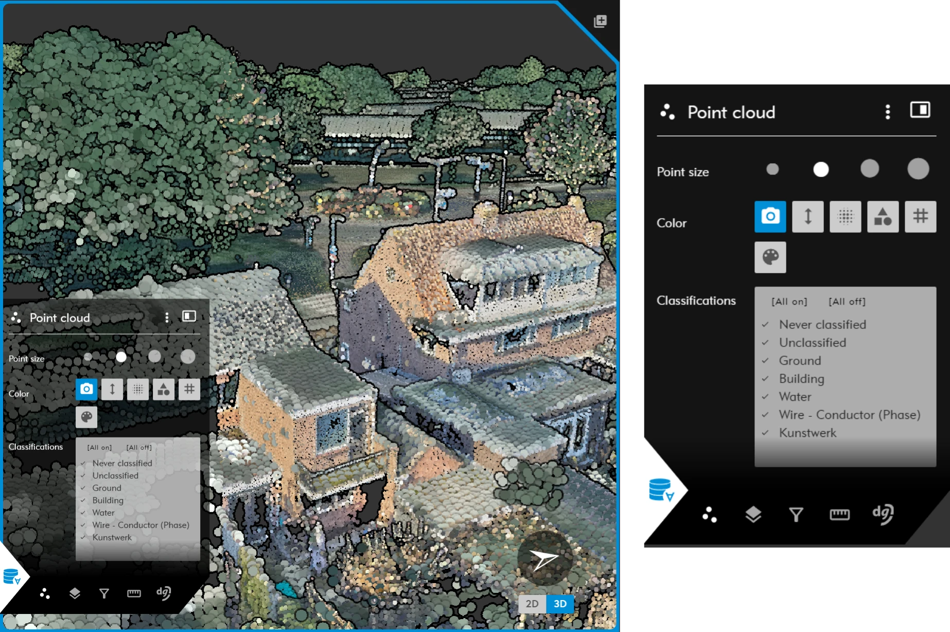| Classification | Filter by class (e.g. ground, vegetation, buildings) | Show only selected classes |